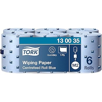 Tork 130035 Multipurpose Wiping Paper Towels Paper Rolls Suitable For M2 Centrefeed System Big Dispensers Blue 6 X 165m O 19cm Amazon Co Uk Business Industry Science