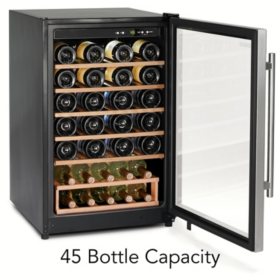This tramontina 45 bottle wine cooler features an attractive double pane glass door with stainless steel frame that allows you to view your wine at a glance.