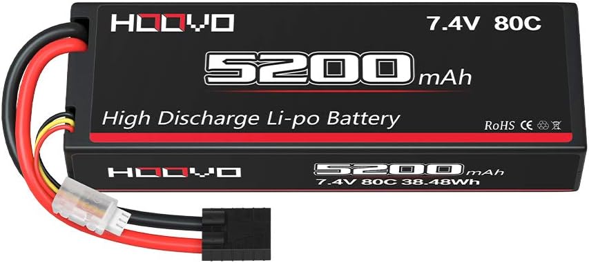 Hoovo 2s 7 4v 5200mah 80c Lipo Battery Hard Case With Traxxas Plug Connector For Rc Car Vehicle Truck Buggy Losi Traxxas Slash Buggy Team Associated Remote App Controlled Vehicle Batteries Hobbies