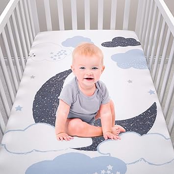 Amazon Com Trend Lab My Tiny Moments Over The Moon Flannel Photo Op Fitted Crib Sheet Baby