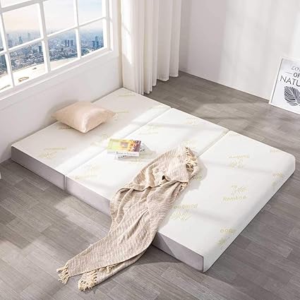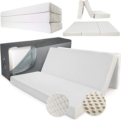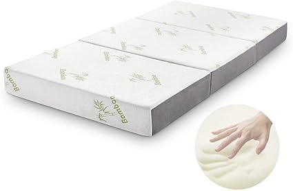 Folding mattress inofia memory foam tri fold mattress with ultra soft removable bamboo cover washable non slip bottom breathable mesh sides queen 6 inch.