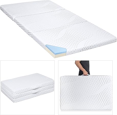 This folding foam mattress is a combination of 3 8 cm top layer of resilient memory foam and 6 2 cm underlying layer of high density support foam which silhouettes the body curves and relieves the pressure points to ensure the optimum comfort.