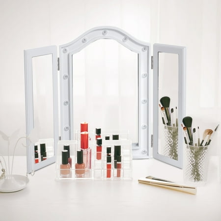 Trifold Freestanding Mirror Lighted Tabletop Vanity Mirror Large Cosmetic W Led Lights Foldable For Bedroom Vanity Table Set White Walmart Canada
