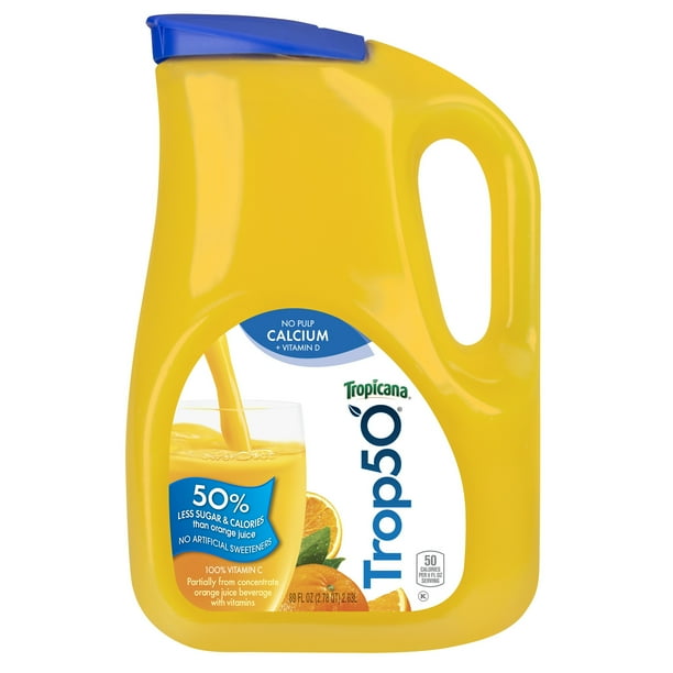Tropicana Trop50 No Pulp Calcium Vitamin D Orange Juice 89 Oz Bottle Walmart Com Walmart Com