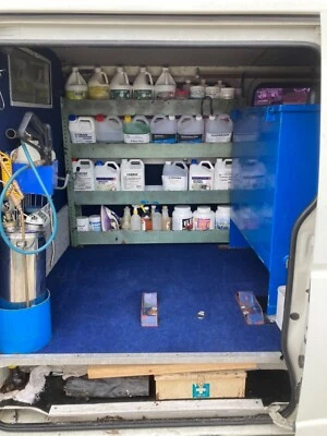 Gmc carpet cleaning van with prochem everest truckmount prochem everest truck mount and 93 gmc with reels shelving extra hose hydraforce sprayer wand stair tool.